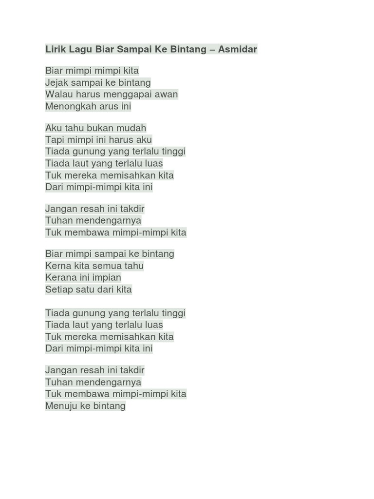 Lirik Lagu Biar Sampai Ke Bintang Pdf